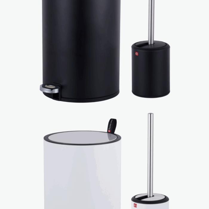 סט שירותים – פח 5 ליטר + מברשת איכותי buona casa צבע כסוף